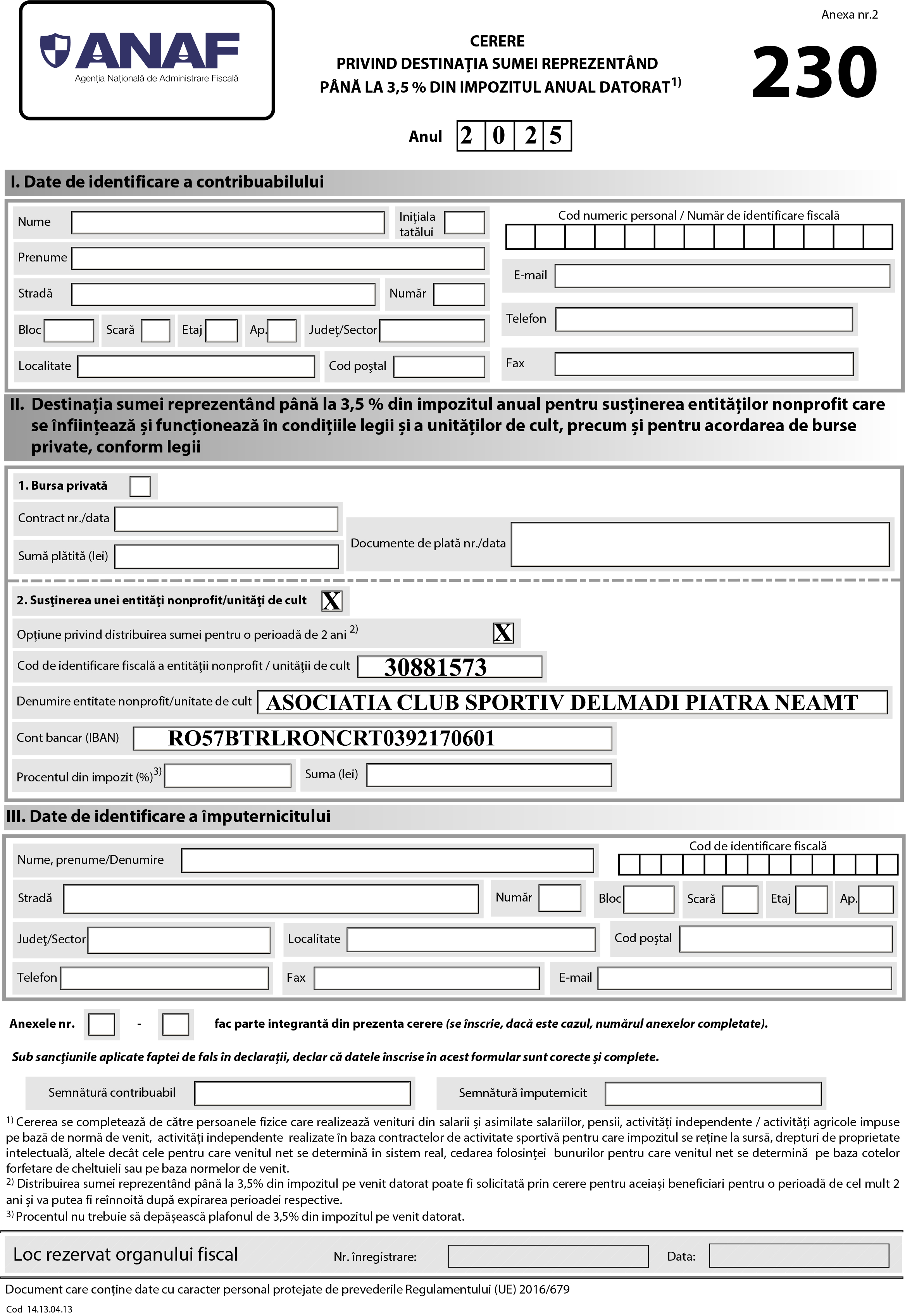 DONEAZA CLUBULUI DELMADI 3,5% DIN IMPOZITUL ANUL DATORAT!